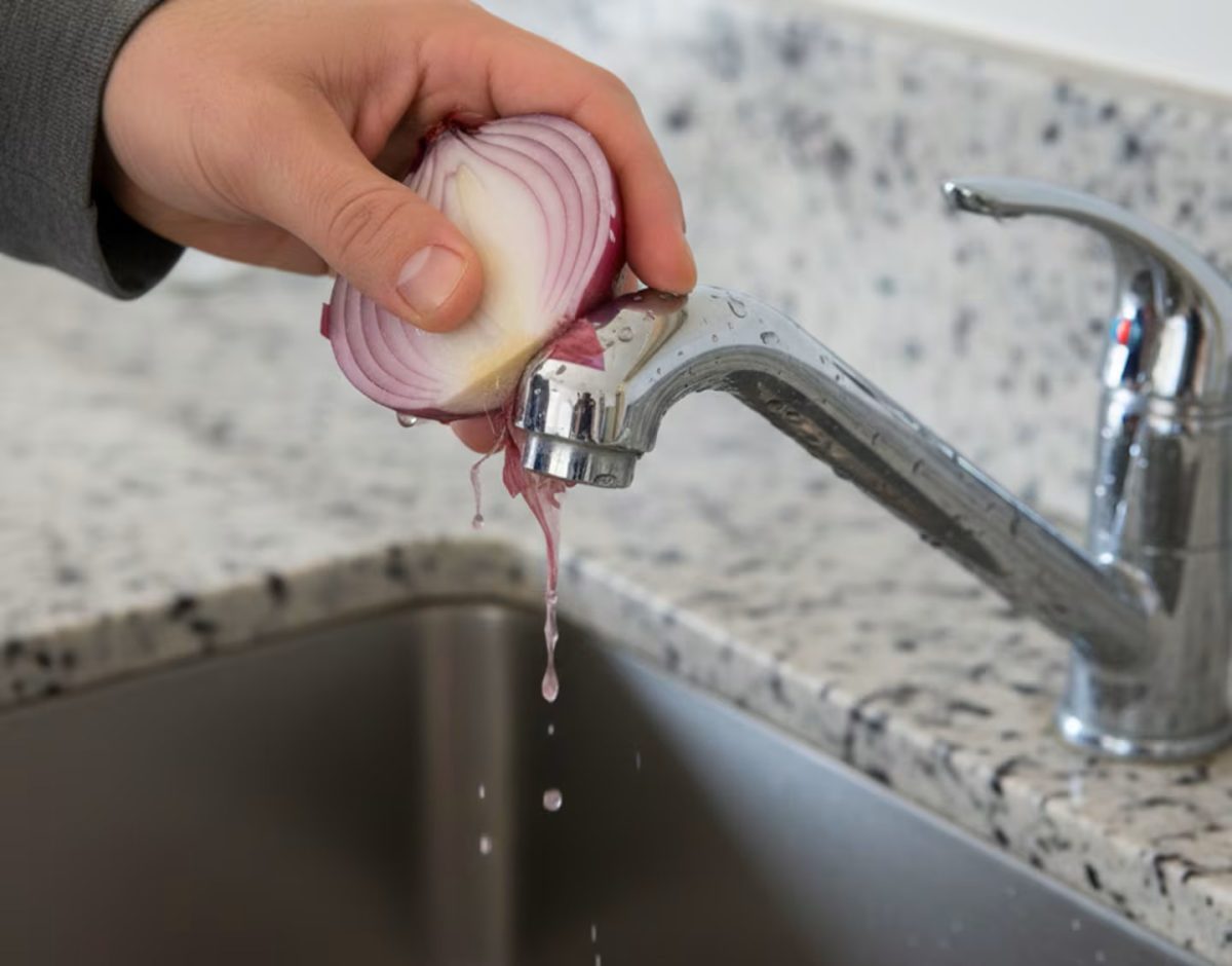 - Menghilangkan kerak dan noda: jus bawang membantu melonggarkan endapan kalsium dan magnesium, yang menyebabkan kerak, terutama di daerah dengan air sadah.